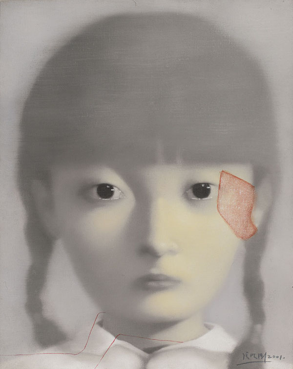 整齊和標準的姿勢以及模型化的表情被認為受過去時代的特徵。但是藝術家並不僅僅滿足於此,張曉剛希望呈現的是各種各樣的血緣關係,親情的、社會的、文化的。從張曉剛「大家庭」的理念可以看出一種時代的集體特徵,也是讓這系列的畫作能夠名揚國際的原因,但是張曉剛曾經自嘲的說,他這個畫大家庭的人,自己的家庭卻是一塌糊塗。關於家庭和血緣,張曉剛有過一個經典的總結:「血緣牢不可破,家庭不堪一擊」。跟前任妻子離婚後,他從四川搬到北京,因為太過思念女兒,成為創作「大家庭」之後的系列作品「失憶與記憶」的緣起。他對女兒的愛,就像現在的妻子佳佳所說的:「我覺得他女兒是他身體的一部份,他自己也說他女兒就是他身上的一根肋骨。我經常也跟他說,他女兒就是他自己,兩人在一起不像兩個人,像一個人。」