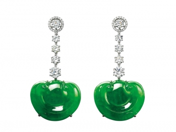緬甸天然翡翠如意配鑽石耳墜