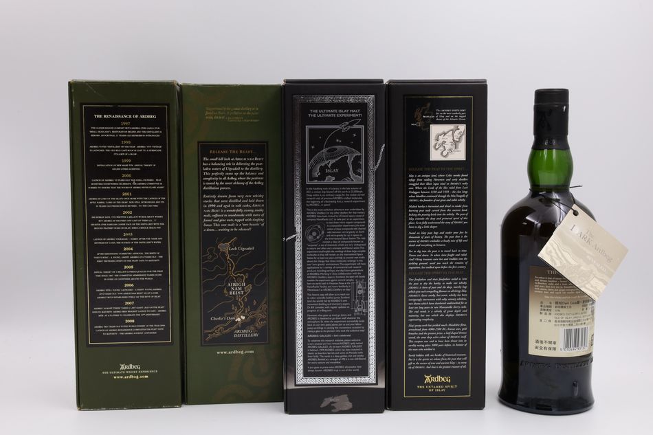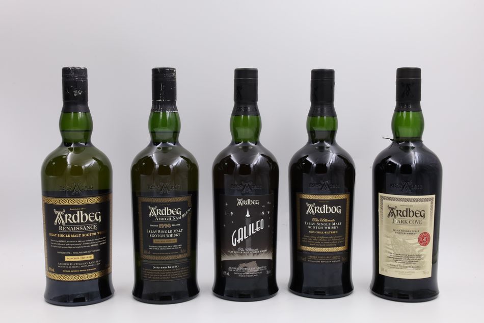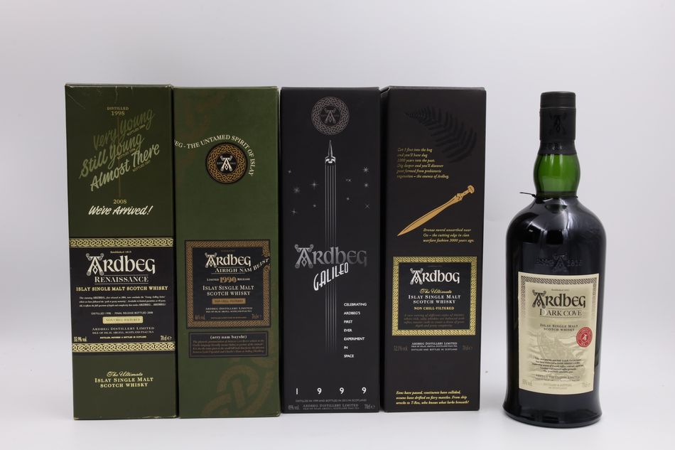 Ardbeg 1998 Renaissance/Ardbeg 1990 Airigh Nam Beist L8/Ardbeg 1999 Galileo/Ardbeg Ardbog Limited Release/Ardbeg Dark Cove Committee Release