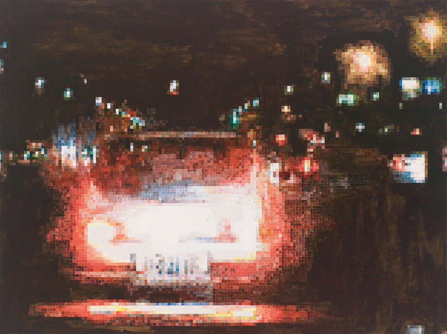 劉韡的油畫《實體動畫》作於2003年,同系列僅創作有兩幅,非常稀有。作品中藝術家掌握現代城市的氣氛,極具視覺張力,捕捉定格的瞬間動作,模糊光影宛如電腦數碼符號的組成,是一幅具有未來感的繪畫創作,也預告了後期創作的都市風景畫。