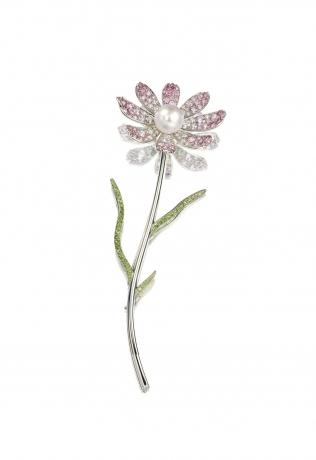 珍珠配粉紅鑽石, 鑽石, 翠榴石及紅寶石“雛菊”胸針, GIMEL