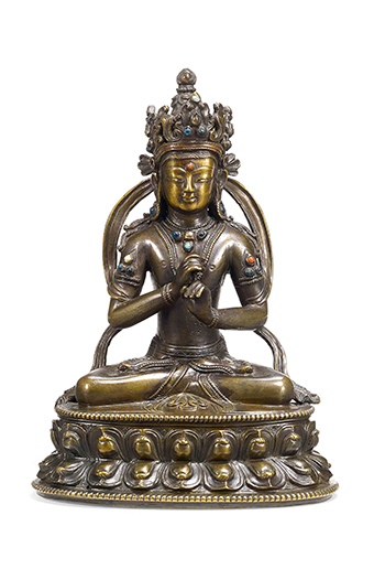 14-15世紀 西藏嵌銀嵌紅銅大日如來坐像