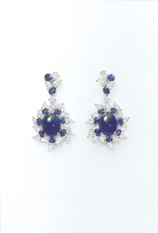緬甸天然蛋面藍寶石配鑽石戒指及耳墜套裝, 附GIA證書