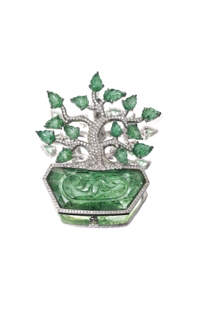 祖母綠配鑽石盆栽胸針, MAUBOUSSIN
