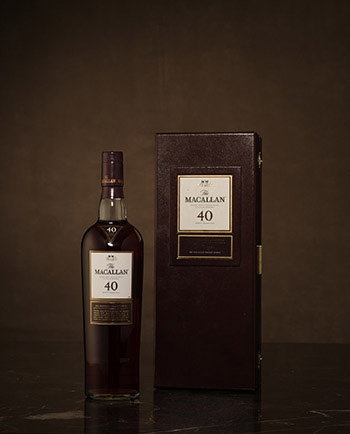 麥卡倫40年是免稅通路限定的高年份作品,於2005年裝瓶,全球限量450 瓶,是麥卡倫有史以來第一次40年作品的公開販售。有著柑橘、黑巧克 力及華麗的乾果氣息,尾韻深邃甜美。