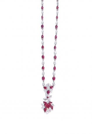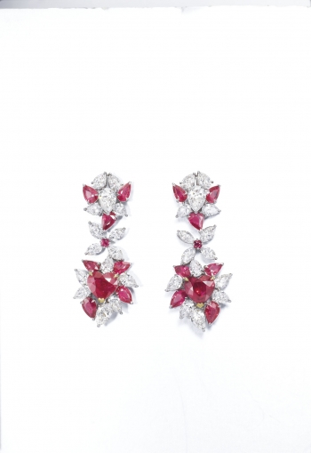 5.02, 4.04與3.07克拉心形緬甸天然紅寶石配鑽石項鍊及耳墜套裝, 附GRS證書