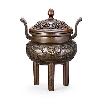 A GOLD AND SILVER-INLAID BRONZE CENSER