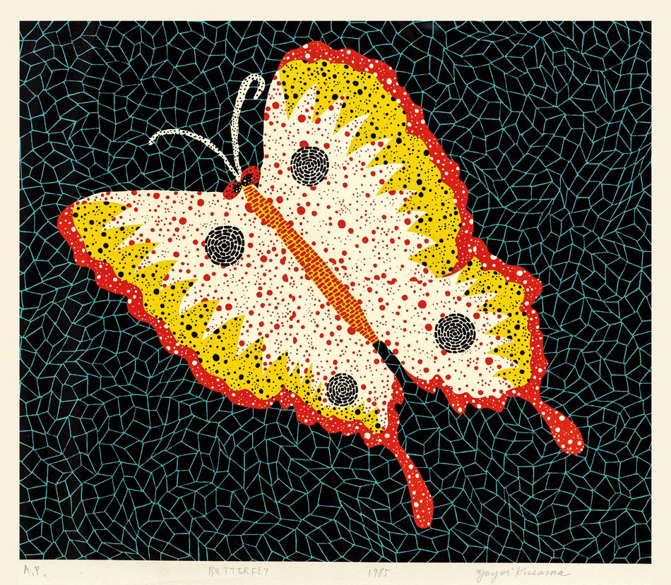 Signed lower Yayoi Kusama, titled Butterfly, dated 1985