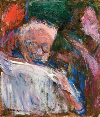簽名畫背:看報 1989 - CHANG. 万.