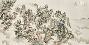 款識:半壑松風,一灘流水。白雲度嶺而不散,山勢接天而未止。