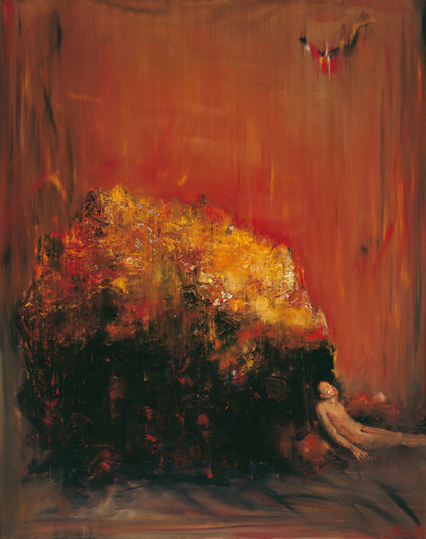 「尹朝陽的繪畫開啟了70 年代出生的一代人青春感傷的抒情主題 ,並真正開始塑造這一代人自己的自我形象和情感特徵。作為『青春殘酷繪畫』的一個代表人物,他的繪畫在中國90年代末期的寫實主義繪畫中具有重要的位置。尹朝陽的繪畫把對青春的表達置於一種人性反省的重要位置,並且對於時代性的青春境遇進行了感性化的一般概括。這種境遇通過一種戲劇性的視覺和時事的張力,表達了這一代人在後意識形態時期所處的人性困境和自我矛盾性。在圖像的主觀性上,尹朝陽的畫面『剝離』了造型表現的客觀色彩 ,從而使境遇感和現實感之間具有一種直接的穿透力 。在表達方式上,尹朝陽的繪畫採用了一種隱藏『技術』的寫實方式,注重畫面完整的心理『場』的塑造,其表現力具有一種出色的天賦。在90年代,以尹朝陽等人為代表的『青春殘酷繪畫』,重新使繪畫在敘事性、圖像概念以及美學趣味上,具有一種不同以往的實驗性和思想深度,並構成90年代前衛繪畫的一個重要傾向。」(摘自朱其〈尹朝陽推介詞〉,《烏托邦&青春物語-尹朝陽藝術作品展》,上海多倫現代美術館,2004年3月28日至4月12日)