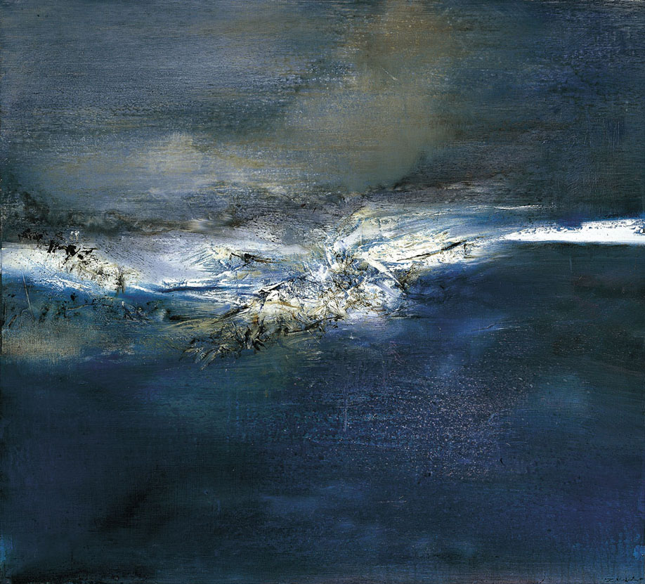 1980年代的趙無極繪畫有一種空靈的傾向,而這樣的嘗試其實難度相當高。畫家說過「畫滿容易,畫空難」,他一直希望畫一種看起來很空的畫。他認為在傳統中國畫裡,如宣紙的不著墨,留白即可處理空的問題。然而油畫的「空」,是要慢慢建造,畫幅越大越難處理,它是一種生活的空間,要生活在其中,必須要經歷其中。虛與實要相連,它們是生活空間的不同層面。而虛實在抽象畫裡至關重要,這是趙無極始終關心的課題。作品《27.8. 84》看似深沈的海洋,潛藏無窮的奧祕,白光緩緩穿透深藍,畫家將幽邈的色彩,空靈的意境傳達得至為高妙,顯現大師的功力。