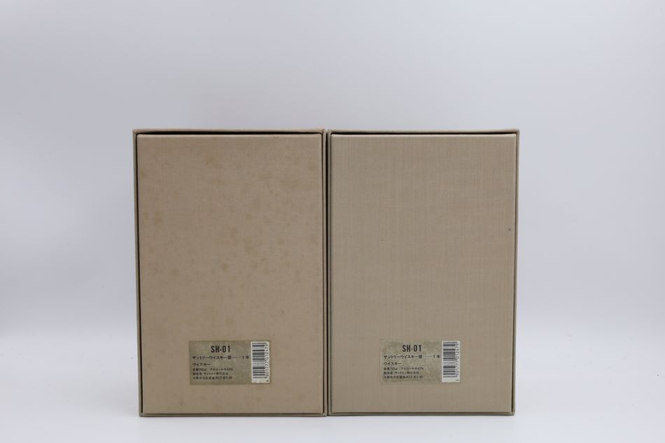 金色瓶蓋, 雙獅酒標, 水位頸部以下, 酒標髒污, 外盒輕微髒污/金色瓶蓋, 金花酒標, 水位頸部以下, 外盒輕微髒污, 盒內布污漬