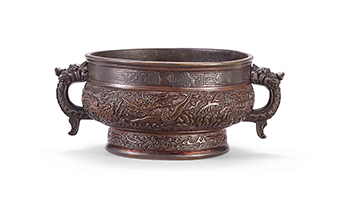 胡文明乃明代鑄銅名匠,江蘇松江府人,明晚期著名工藝家,以製作銅鎏金文房用器見長。所鑄銅爐精美華麗,為時人所重,故傳世珍品之珍貴。