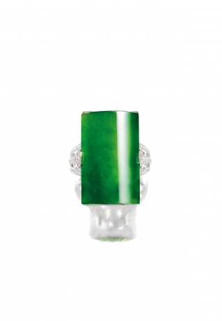 A JADEITE AND DIAMOND RING