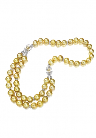 A GOLDEN SOUTH SEA CULTURED PEARL AND DIAMOND NECKLACE, BY DILYS' COLLECTION