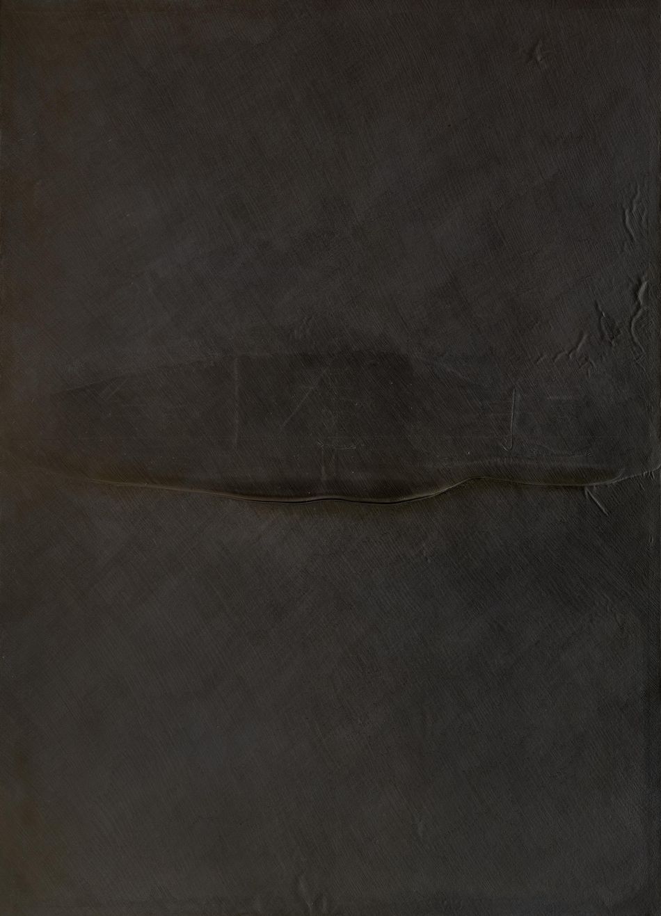 技法即是以白胶覆盖画布,用电风扇吹干,使其呈现膨胀或皱褶等奇特纹路,再于白胶上以石墨作画。松谷武判的作品突破传统平面绘画的局限,既是绘画,亦是雕