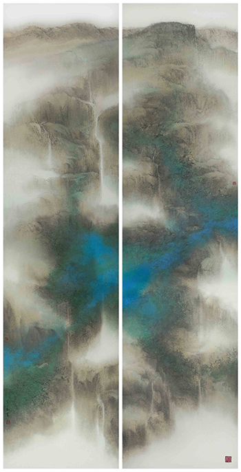 作品名為《蔚然深秀》,出自歐陽修的《醉翁亭記》, 選採了該詞所描述之環滁皆山、林壑尤美、望之蔚然等優美字句來創造出山水意象, 並加以重彩潑色作為畫面焦點重心,提升觀眾望之蔚然的視覺震撼,也表現了流水落下所產生煙霞霧氣隨意飄散後景象之感觀奇想,而醉翁之意只在乎山水之間也。容子敏專注水墨藝術創作,其作品訊息是要將社會世俗的煩囂轉移到靜謐的心靈,把無形的精神境界以筆墨表現在有形的山水之中,追求詩人杜甫的「水流心不競,雲在意具遲」這樣的人生哲理。山水意境一向是古代文人生命理念的維繫,是人性的寫照,是心靈寄託的家園。容氏受中國近代水墨大師傅抱石之大筆淋漓所啟發,又受西方畫家William Turner及Claude Monet之設色構圖影響,畫風糅合了中西技法,既有豐富鮮明的色彩,又不失傳統水墨之淡然物外的氣魄 。