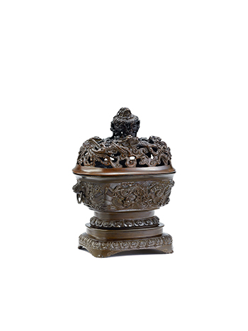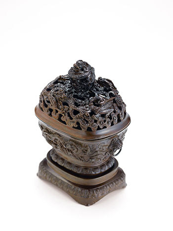 清 銅海水雲龍紋薰爐