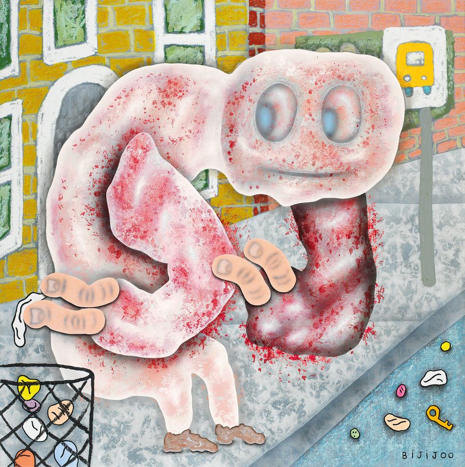 Bijijoo (Michael Todd Horne,暱稱B)於1975年出生於美國亞特蘭大。從小就熱衷於繪畫,也有從事寫作、音樂和錄像等經驗。除此之外,藝術家也熱愛研究數學、物理、電腦科學和化學,並於2008年取得波特蘭州立大學生物物理學博士學位,目前在耐克(Nike)從事數位設計、創新介面和知識產權的工作。藝術家時常受到女兒的想像力及對怪獸熱愛的啟發,同時結合自身的學術背景,創作出怪獸卡通及誇張生活的題材。通過傳統繪畫媒材和自動繪圖,Bijijoo呈現了一種實驗性的效果:角色們在凍結的空間及時間中的互動。藝術家自2011年第一場在波特蘭巴索.哈爾沃德畫廊的個展「總統與火腿」,接連在台北Vins畫廊和馬德里Villazan畫廊舉辦多場展覽。Bijijoo也曾至巴黎、香港、紐約、洛杉磯、阿姆斯特丹、安特衛普參與聯展。