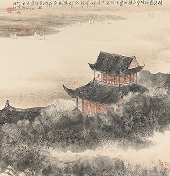 HE HUAISHUO (HO Huai-shuo, Chinese, b.1941) Gazing at the River in Pavilion