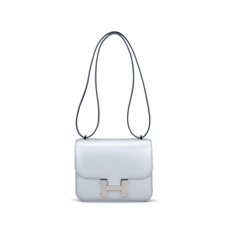 限量版銀色CHAMKILIGHT山羊皮18公分迷你CONSTANCE MIROIR包附銀色金屬配件