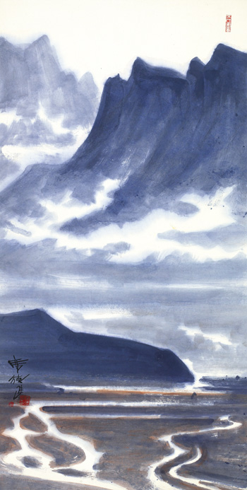 「筆墨是中國,構圖是現代,情感是民族,生活是台灣。」有人曾以這四句話概括出席德進的創作理念。彩墨作品《紫色山水》則是席氏創作理念的實現,他以中國彩墨畫描繪台灣地方色彩濃厚的山水景色,風格古雅又富現代感。