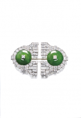 裝飾藝術時期緬甸天然翡翠懷古配鑽石胸針