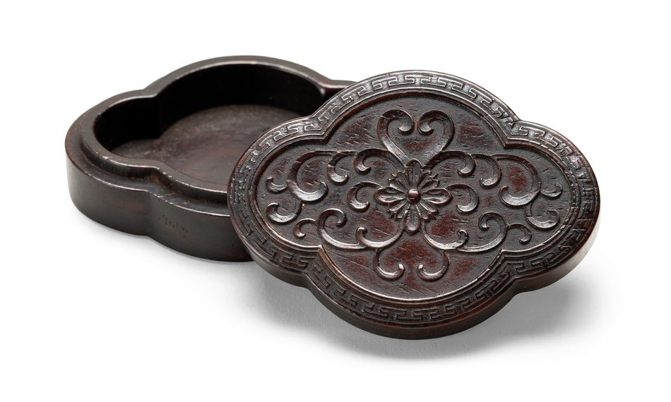 清 紫檀海棠式香盒