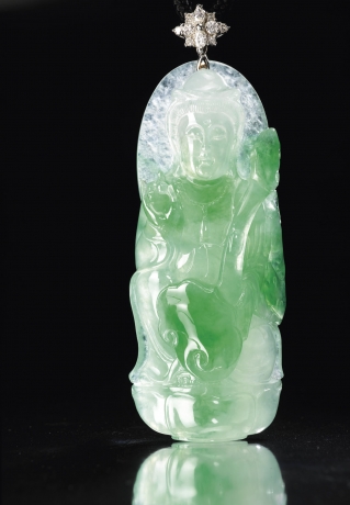 緬甸天然翡翠觀音配鑽石吊墜項鍊