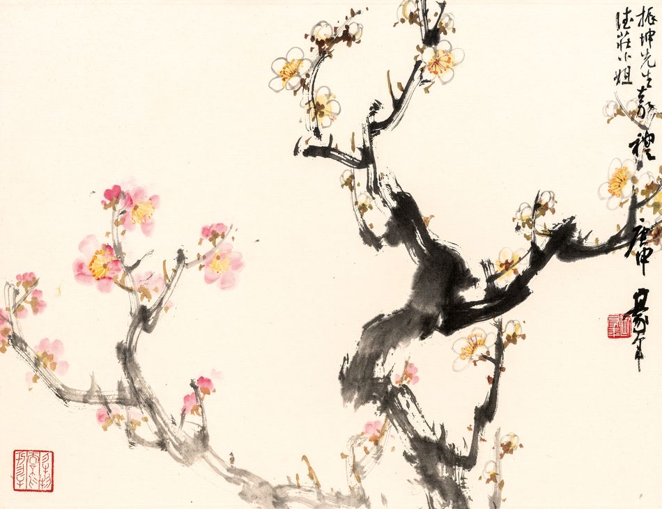 (上)乙丑歲朝,豪年。慶平法家賢伉儷共賞,辛未春月,豪年。