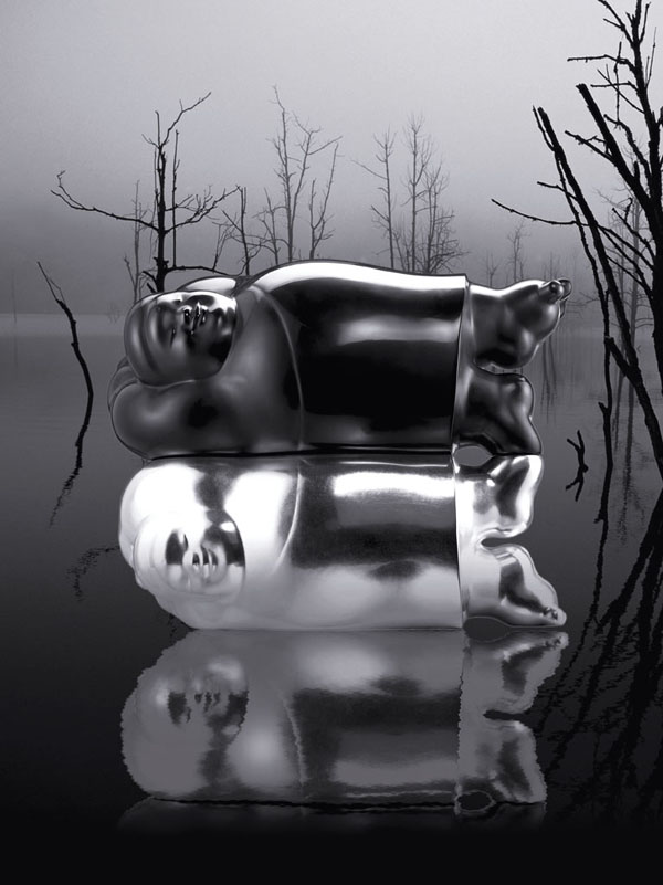 "Clear Soul", created in 2002 by Li Chen, is part of his series "Spiritual Journey through the Great Ether". The sculpture exclusively adopts a silvering material and creates a mirror-like inverting effect. "Clear Soul" figuratively suggests that only a pure and spotless soul, such as that of a newborn baby, may freely fly over the serene and clear lake. The infant-like "Clear Soul" actually means freedom from desires or demands, negating mortal emotions or desires, complying with the rules of nature, and facing and enjoying life with the most genuine attitude. "Clear Soul" seems as if a mind of concerns has seemingly cast off the concerns of mortal toil; it is substantial but feels weightless. Life is real and yet full of illusions, which are doomed to vanish as time goes by. This philosophy can be compared to a mirror-like inverting effect. Pure and spotless "Clear Soul", which is the boundary of Buddhism, will enjoy the freedom of flying over the serene and clear lake. The viewer thoroughly tasting Li Chen's works, will be touched by his "trueness", which, as that of a newborn baby, has already been accidentally revealed by his own name (The Chinese character "((Chen)" means "true") There are no over-complicated lines, and the perfectly round and unsophisticated image or figures always result in understanding smiles in observers. The simple design contains integrated flavor and natural beauty, and presents a visual impact beyond time and space. "Clear Soul" is one of Li Chen's magnum opus that reflects his higher pursuit of art.