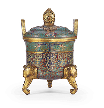 清 掐絲琺瑯太平有象三足爐