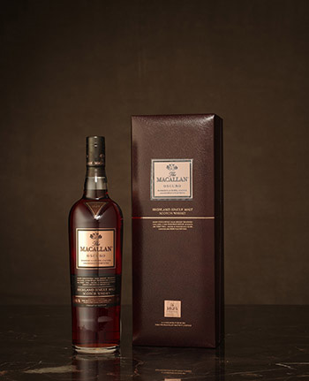 麥卡倫1824系列中的Oscuro,在西班牙文中為「黑色」,挑選1987年至1997 年間的雪莉酒桶混合而成,其中50%以上是初次雪莉桶,再以黃金比例保留 46.5%的酒精強度,打造香氣奔放、豐富性和深度兼具的雪莉威士忌。