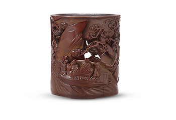 17世紀 竹雕赤壁夜遊筆筒