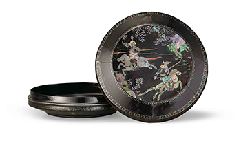 清 騎馬人物螺鈿蓋盒