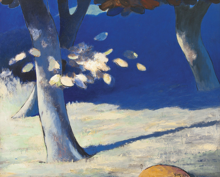 簽名畫背:Yang Din 楊登雄 Paysage 月夜II 1995.3 162 x 130 cm