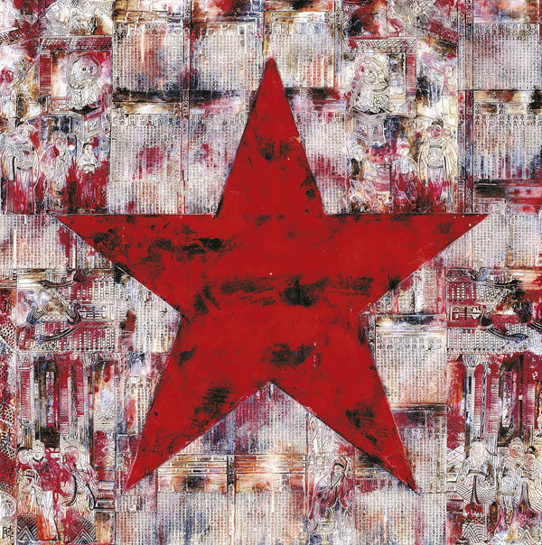 在黃鋼最近創作的一系列作品中,他將從前的年畫雕刻版和現代政治圖像結合起來,在從前的流行文化和今天的時尚景觀之間組織起聯繫。其間,既展現出一種必然的聯繫,又表達了一種斷裂的差異。這無疑是對當代藝術自身的一種豐富。將最為民間和大眾的那些年畫木刻版收集起來,並用選擇、拼合、切割等方式將它們作為畫面的背景,並將好幾十年以後中國文化革命中流行的視覺圖像或五角星符號繪製在其表面。其意義有如下幾點:其一,在不同時代的大眾文化之間做出一種聯結,旨在建立一種關於歷史的敘事;其二,藝術家通過身體力行,在表達著對傳統文化的敬重—正如黃鋼自己多次表述的那樣,傳統文化並不僅僅是被用來調侃的,這種深厚的東方文化傳統不但值得尊重,而且是未來文化發展的源泉和動力之一;其三,在尊重傳統文化資源的基礎上,他將傳統的視覺圖像以一種當代藝術的方式呈現出來,努力於傳統的現代化。正是如此,我認為他的作品在優雅的視覺形式之下,支撐力是一種嚴肅的創作態度。(文/盛葳)