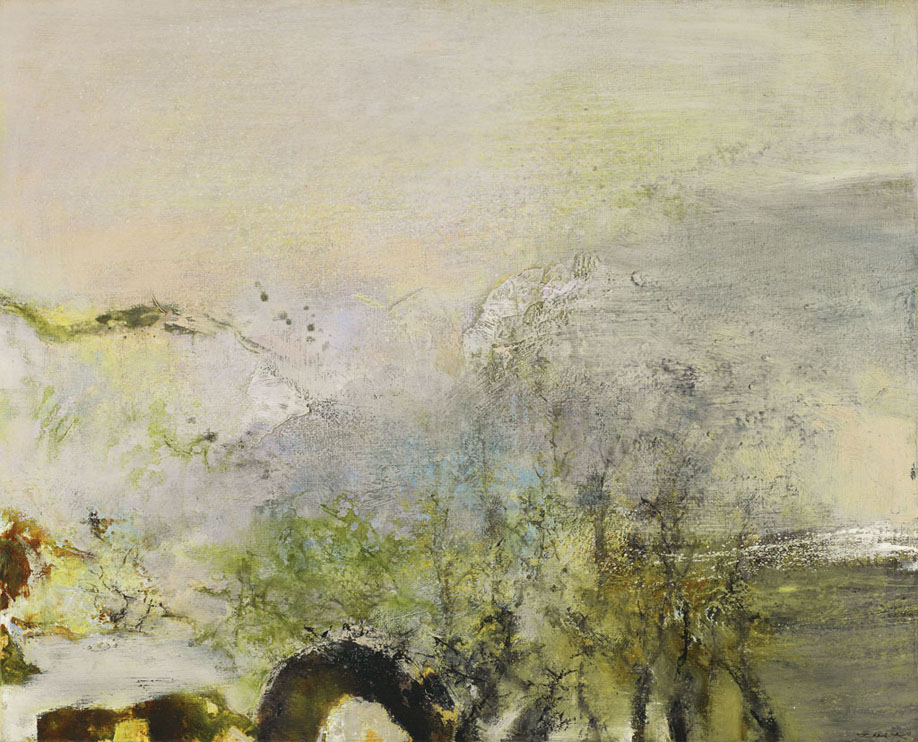趙無極十四歲入國立杭州藝專,當年校舍建在西湖畔,在校六年間常流連於此,西湖是他青春年少時的美好記憶象徵。他的自傳裡記錄了一段西湖的回憶:「許多中國詩人都曾在此徜徉、吟詠。少年時代,我每天都在湖邊流連,從不厭倦。大自然隨著時辰的推衍、季節的嬗遞而變化無窮。水波的瀲豔、光的靈動,水天之間的煙嵐都使我出神入迷。我常在湖邊,一坐數小時,守候空氣漾過平靜的湖面,風輕搖樺樹和槭樹葉,我眼中所見不是精雕細琢的小橋亭台、水面映照的竹葉,我要看的是空間:空間的伸展、扭轉,和一片樹葉在水中倒影幻化出的無窮的藍。」(參閱趙無極、梵思娃著、劉俐譯《趙無極自畫像》,藝術家出版社,台北,1992初版,頁15)
