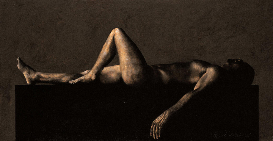 Signed on the reverse AHMAD ZAKII ANWAR and titled RECLINING FIGURE in English, dated 2007, media ACRYLIC ON LINEN, size 102 x 197 cm