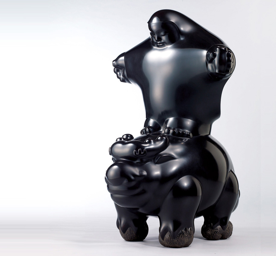 Li Chen's sculptures investigate the energy of such emptiness, and his sculptural forms are not empty, but instead are full of a vital energy. He achieves this through an energetic and spiritual style that uses exaggerated shapes and dark black lacquer to create a spiritual matter that people can absorb. But the sculptures also convey emotions that are sweet, romantic, happy and satisfied. For this reason, though some of his works may be massive, they don't appear oppressive and heavy. Instead they seem to be floating in the air, exhibiting an alluring ambiguity between lightness and heaviness.
