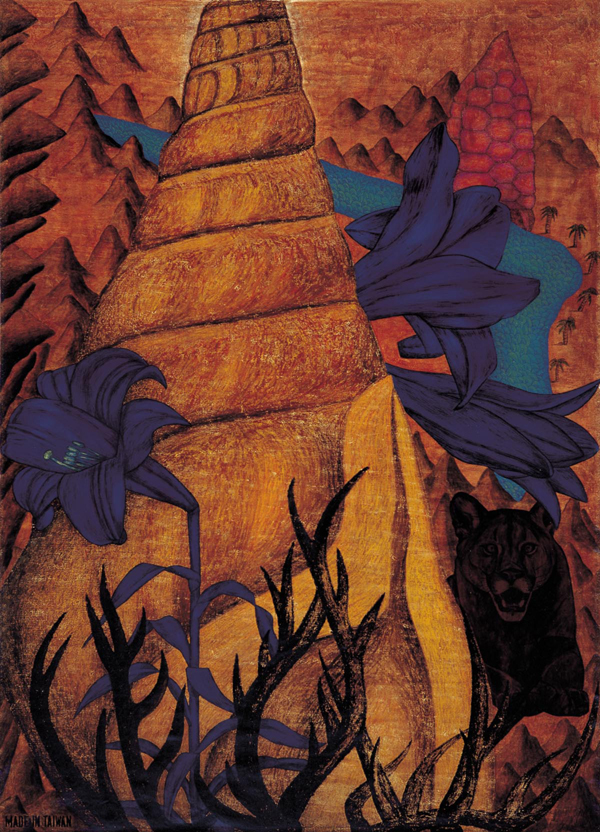 台灣當代畫家畫風的時代性與社會性非常強烈,1987年台灣解嚴對台灣當代文化的發展是一個非常重要的轉捩點,由此導致的上世紀90年代初至90年代中期的台灣當代藝術發展,和這一股大潮流鼎肩同在,批判政治與社會的藝術作品充份反映了這個時期的社會狀況。而經由光影精確畫出眼前所見的畫風,再經由內心穿越色彩,強烈表達自我思考的風格,是早期台灣當代藝術群體──悍圖社的典型風格。從1996年的「大圓地誌」系列開始,楊茂林開始把卡通漫畫人物放到我的創作中,作為具有重要意義的圖像;身為悍圖社的藝術家之一,在此之前,楊茂林延續至今的內省、自覺、批判與細膩的畫風,創作出強而有力且具時代風格的心靈折射作品,是藝術家始終如一的精神訴求。在此幅創作於1992年的《員山紀事L9215》作品中,藝術家通過放大的植物狀態,誇張的表現手法,以植物超越尋常的錐般外型,表達出生命力的剛強,影射鄉土生活及台灣人民的堅韌,蘊含強烈的時代性。