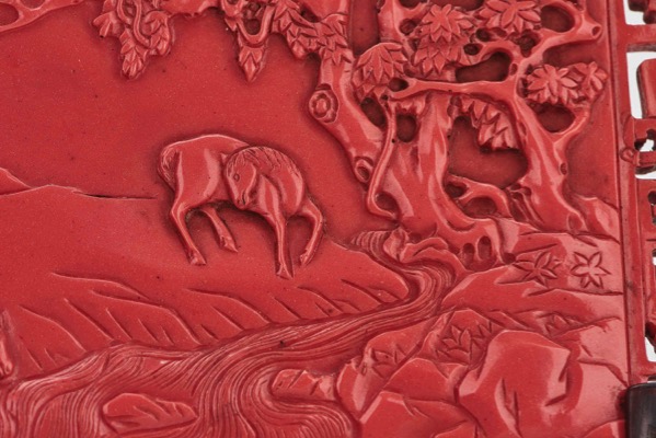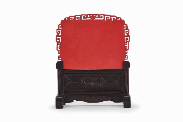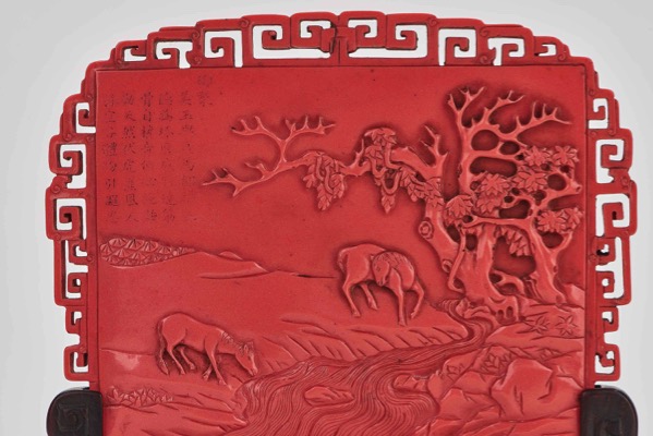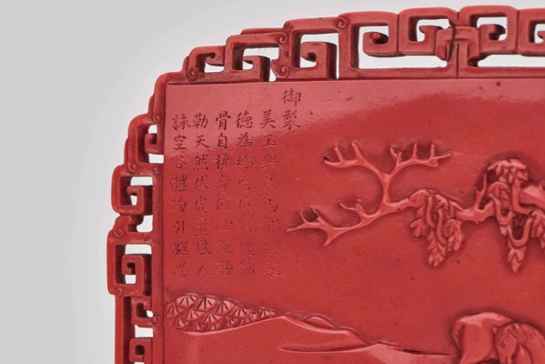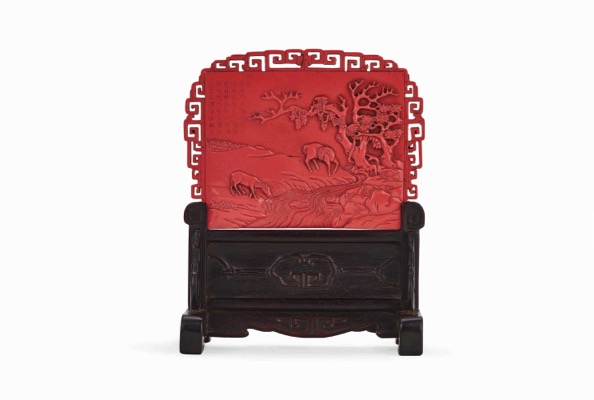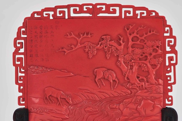 清乾隆 仿珊瑚紅料駿馬圖御製詩插屏