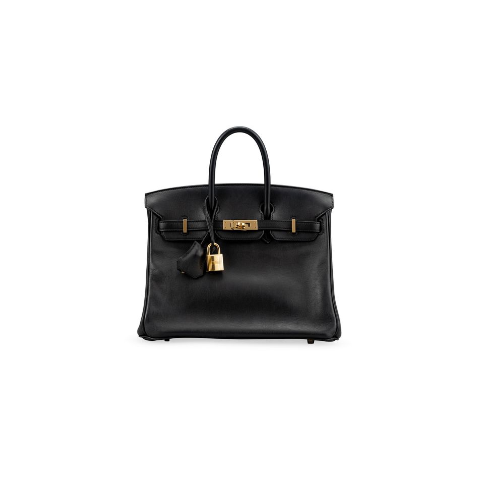 黑色SWIFT牛皮25公分柏金包附金色金屬配件