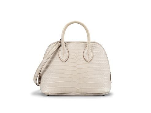 霧面冰川白色POROSUS鱷魚皮18公分迷你BOLIDE 1923包附銀色金屬配件