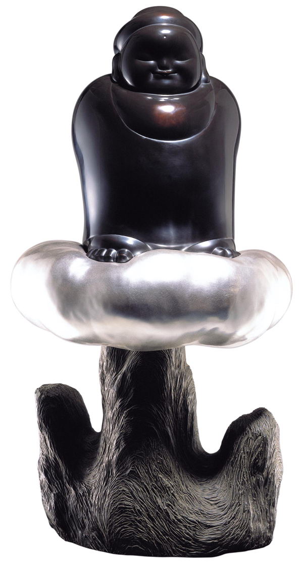 李真透過現代化手法雕塑,發展出有別於傳統面貌的新東方精神,呈現更高層次的靈性之美,使流傳千年的傳統造像能與現代完美融合。李真技巧性的處理雕塑形體姿態,塑像面容安詳和平,臉部表情渾圓敦厚又慈悲,是喜樂也是祥和。雕塑的底座為一座山,轉化中國象形文字的「山」,物象為一座雕塑。遊者雙手負背而立,飄然佇立於山巔雲頂,神情形態自若愜意,逍遙而自在。李真極擅長處理這種量體輕重對應的關係,銀的溫潤與黑的能量,既對比又和諧;銀白色的雲朵輕巧飄然,卻能夠穩穩支撐住具有能量的翩翩遊者,在不穩定中求得安定。