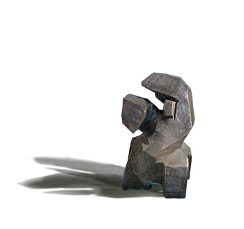 演化而來,以前的『推手』兩個個體還有間距;而新創作的『太極拱門』則將雙手連接起來,一氣相通,合為一體,較之先前,人 物圖像形態己不復存在,作品進入了一種完全由抽象量塊所構成的造型領域。作品整體有如蘊藏氣韻於其中,左方傳送至右方,右 方再回送至左方,如此反反覆覆,透過一個抽象兼具現代性的造型語彙,傳達生生不息的概念,永恆而連綿無盡。」本拍品俐落的 幾何切面、手下刀斧不跟隨「形」,蛻變為循「意」游走,從有形到無形,貫穿實虛,著實值得藝術愛好者雋永珍藏。