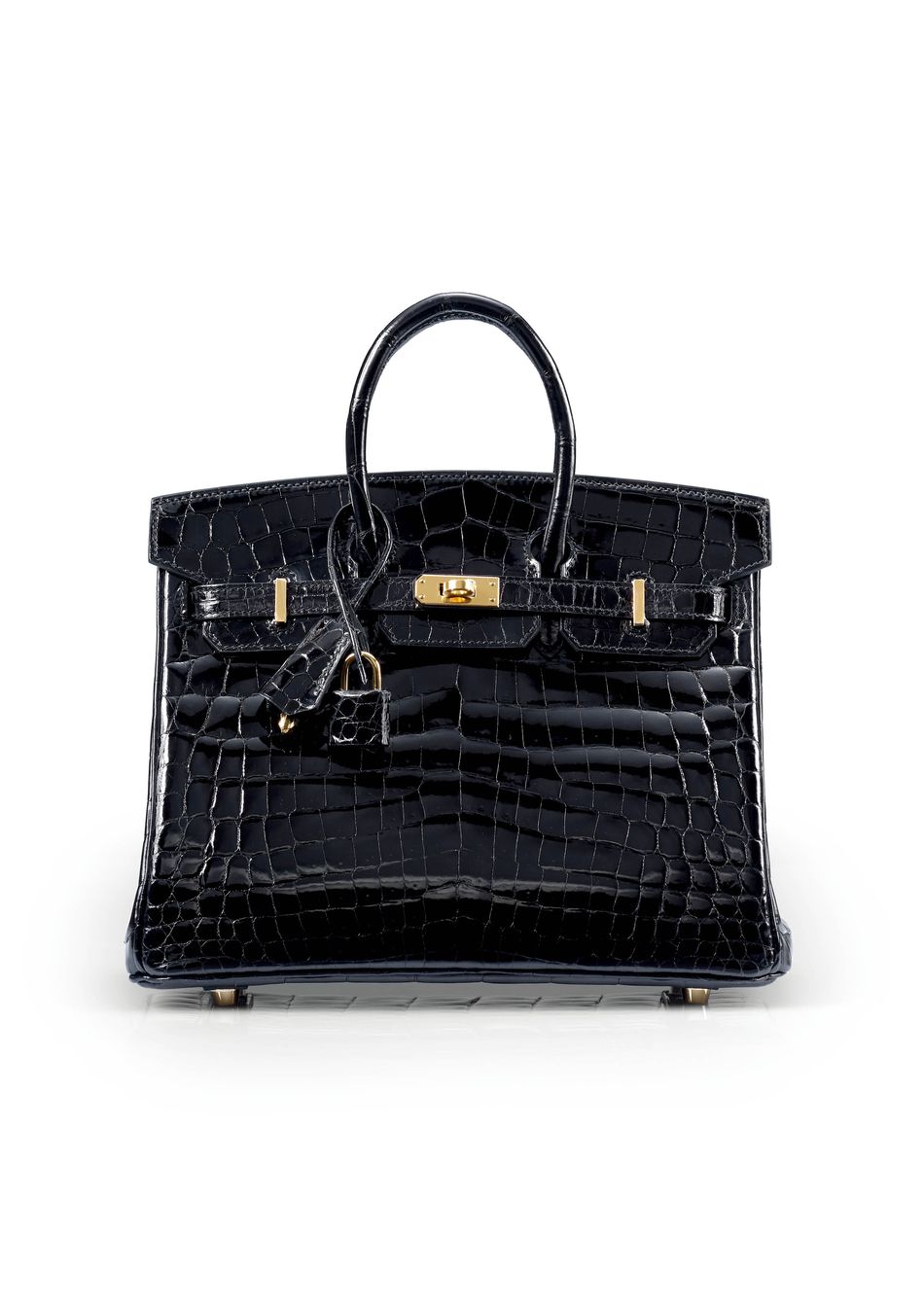 亮面黑色NILO尼羅鱷皮25公分柏金包附金色金屬配件