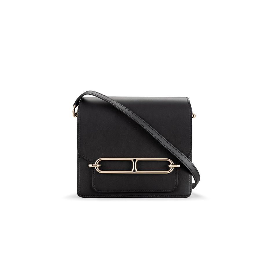 A NOIR SWIFT LEATHER MINI ROULIS 18 WITH GOLD HARDWARE