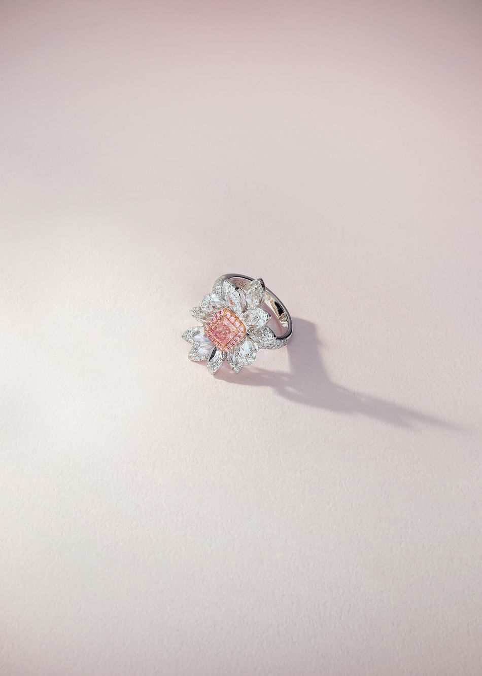 1.01克拉雷迪恩明亮形正彩橙粉紅色鑽石配粉紅色鑽石戒指,附GIA證書
